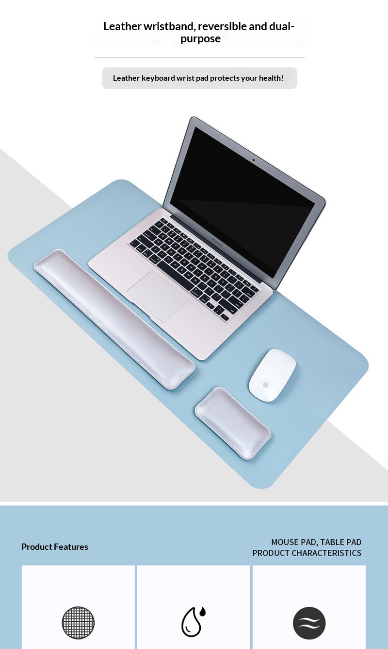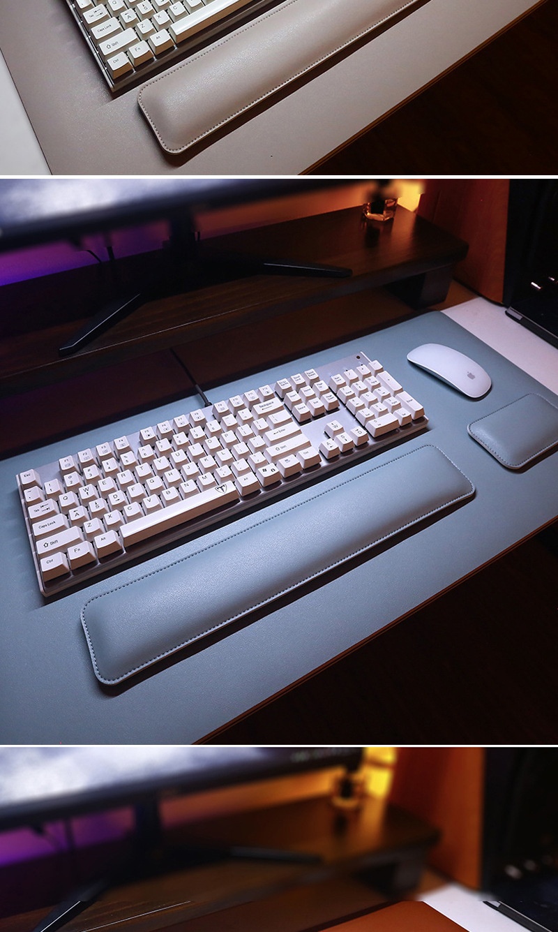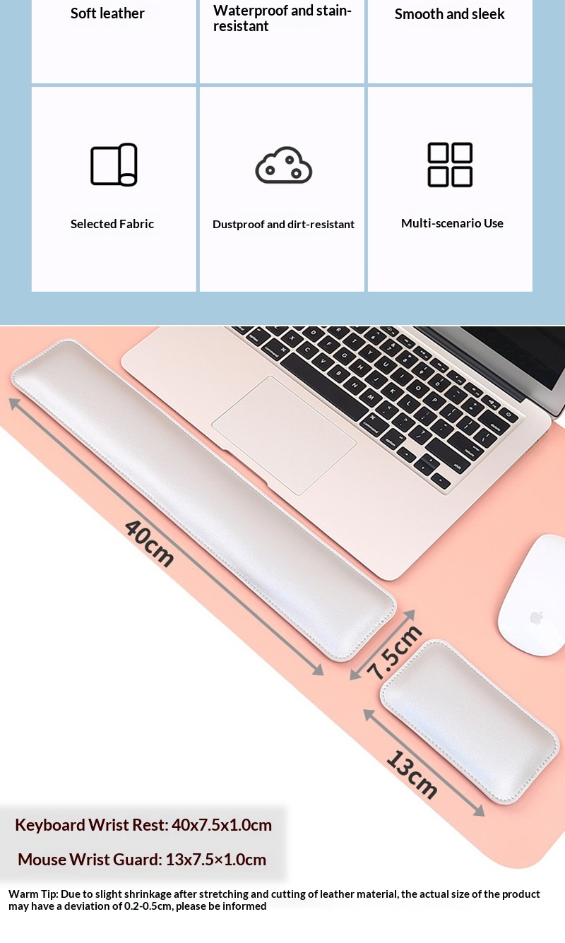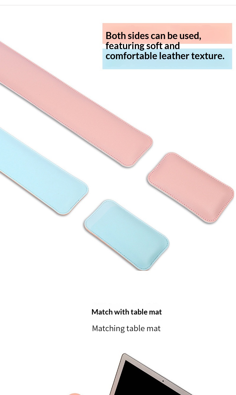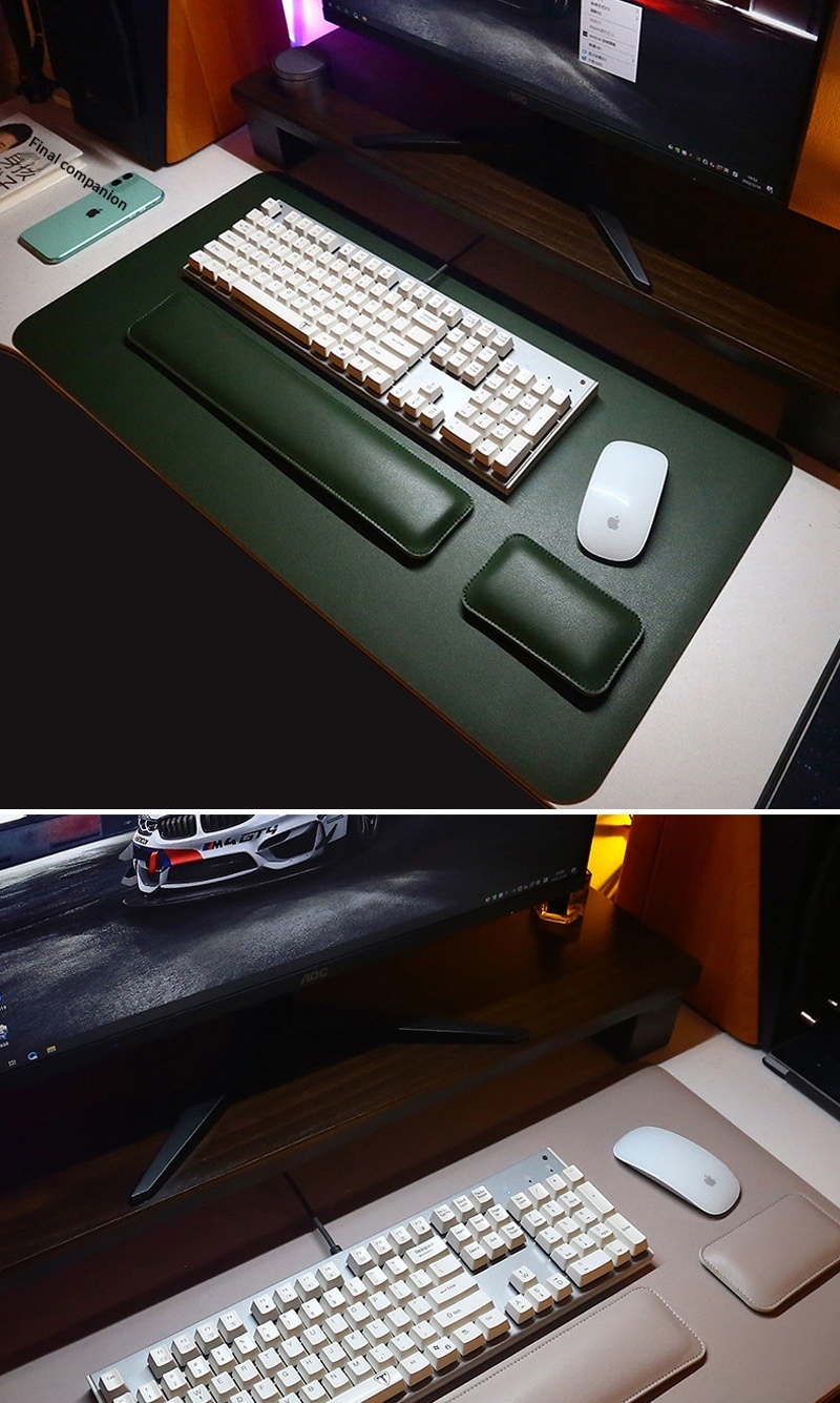 Colors: (Gray + Silver Gray) 40x80 desk mat + wrist rest set; (Light Brown + Gray) 40x80 desk mat + wrist rest set; (Light Pink + Silver Gray) 40x80 desk mat + wrist rest set; (Light Blue + Gray) 40x80 desk mat + wrist rest set; (Dark Green + Gray) 40x80 desk mat + wrist rest set